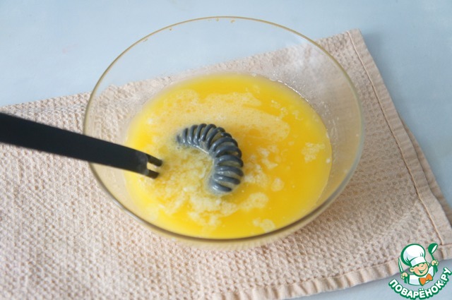 Отдельно смешать сок грейпфрута, цедру, яйца и масло.