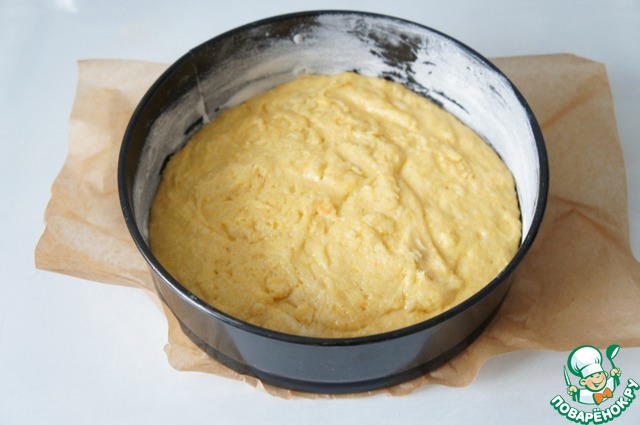 Форму 22 см в диаметре смазать маслом и присыпать мукой. -