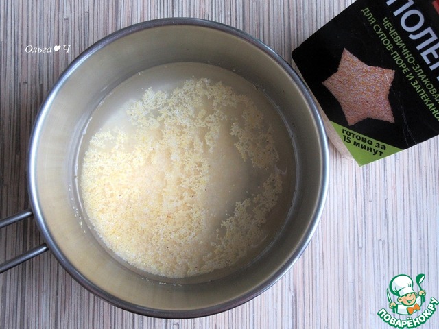 Кабачок натрите на терке, присолите. Поленту засыпьте в кипящую воду, доведите до кипения.
