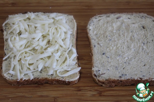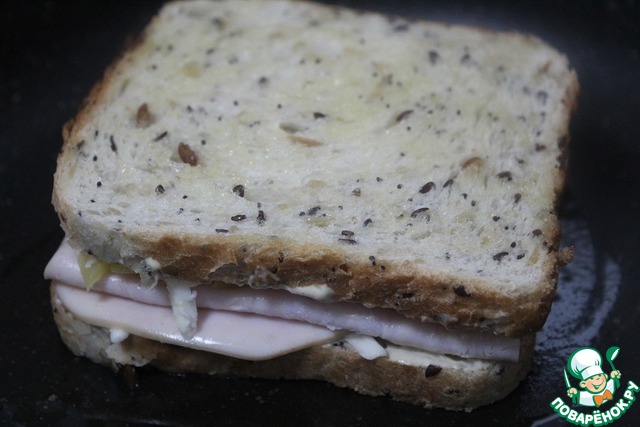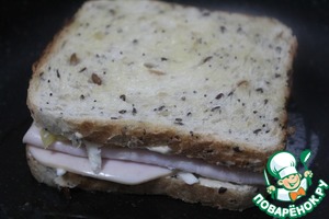 На разогретую сковороду с топленым маслом выложить сэндвич.