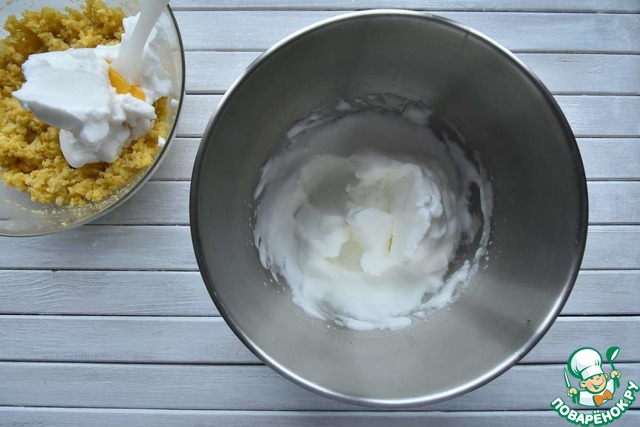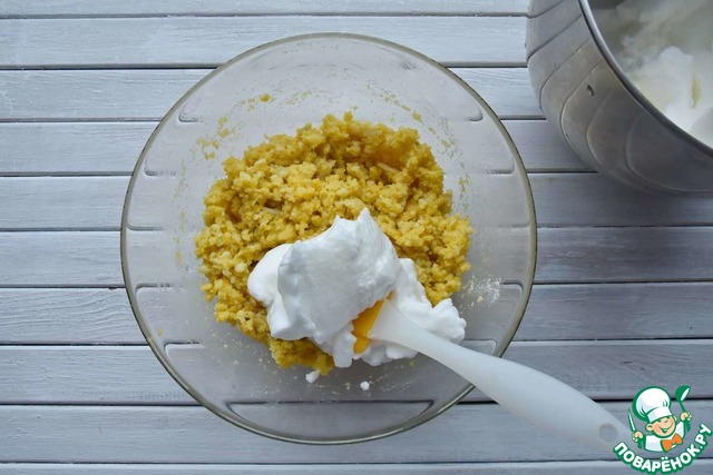 Постепенно, в несколько этапов вмешиваю взбитые белки в основную массу.