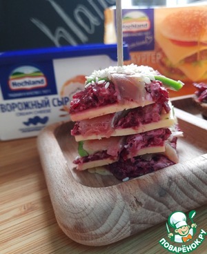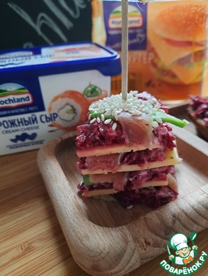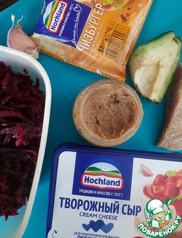 Такое может случиться только у меня!!! Приготовлено все для закуски и в момент её сбора ты понимаешь, что дома кто-то съел практически весь хлеб!! Именно так и родился у меня данный рецепт - очень, к слову, удачный!!! Любимая многими свекольная намазка становится очень нежной за счёт добавления творожного сыра ТМ Hochland, а плавленый сыр "Чизбургер" от ТМ Hochland великолепно показал себя как основа канапушек-закусочек!