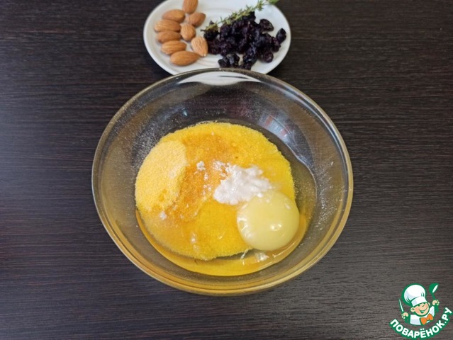 Ингредиенты для «Кукурузный хлебец с вишней и миндалём»: