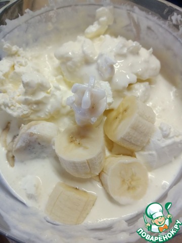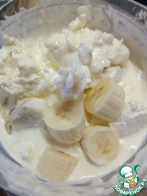 В чашу выкладываем остывшую кашу, нарезанные бананы, творожный сыр и сливки, - измельчаем все до однородного состояния. -