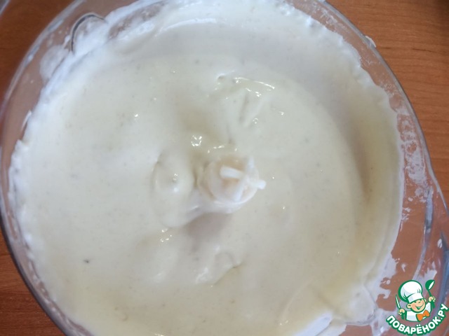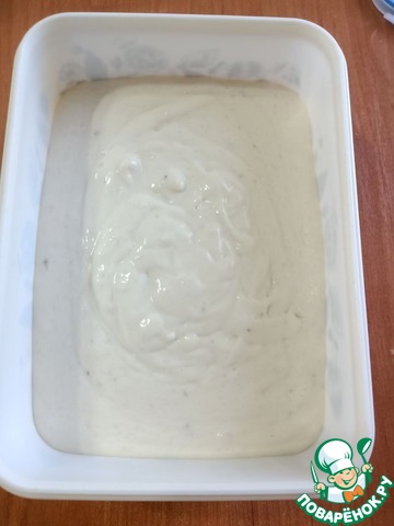 У кого есть мороженица, вы счастливчики)) у меня ее нет, - поэтому всю нашу смесь выкладываем в контейнер, закрываем крышкой и ставим в морозилку. каждые 1-1,5 часа смотрим, и немного перемешиваем, чтобы не образовались льдинки. Если честно, всего два раза перемешала для надежности, хотя оно почти без льдинок было.