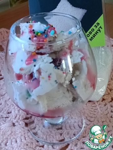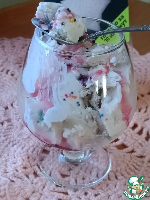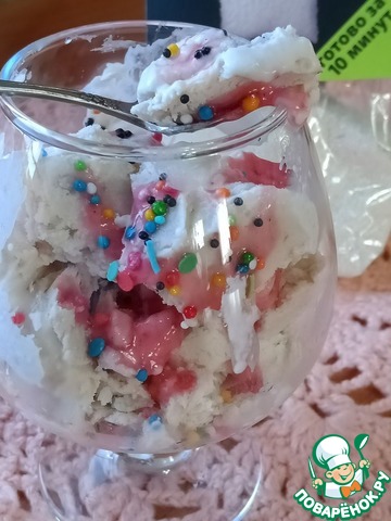 Перед подачей достать из морозилки примерно за 30-40 и поставить в холодильник, затем выкладываем в креманки, вазочки, и украшаем, чем душа пожелает.