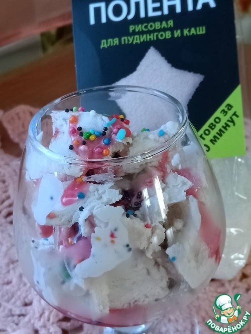 Для начала сварим густую кашу из рисовой поленты, - сварите ее на топленом или концентрированном молоке, вкус мороженого от этого только выиграет