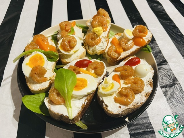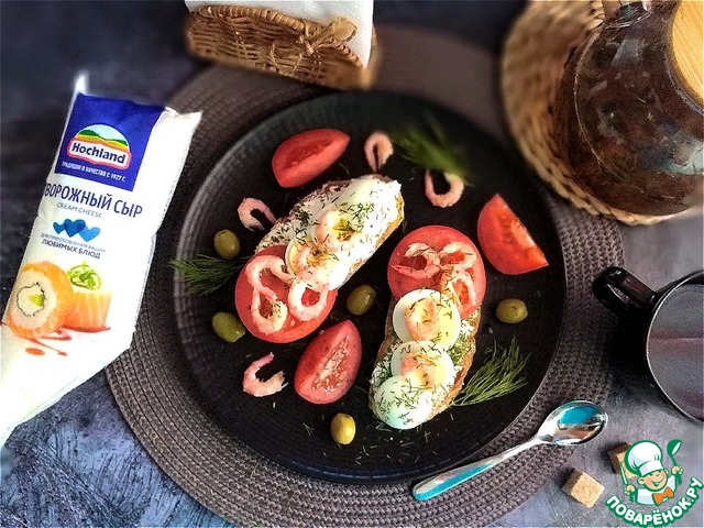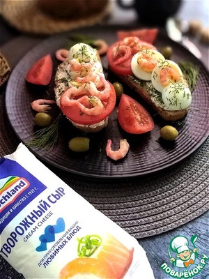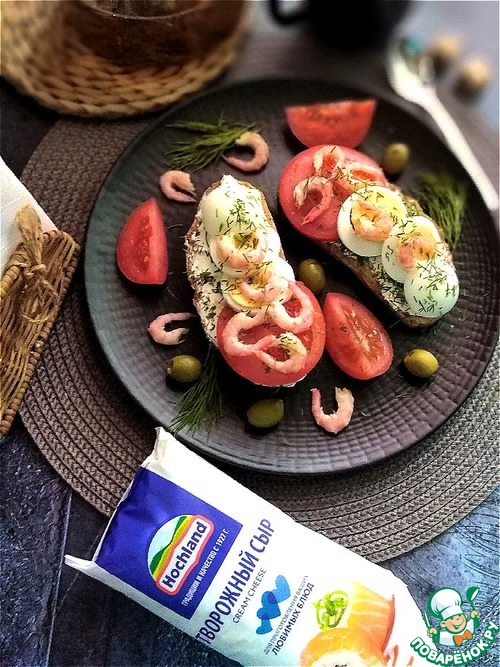 Рецепт «Бутерброды с творожным сыром и креветками»: