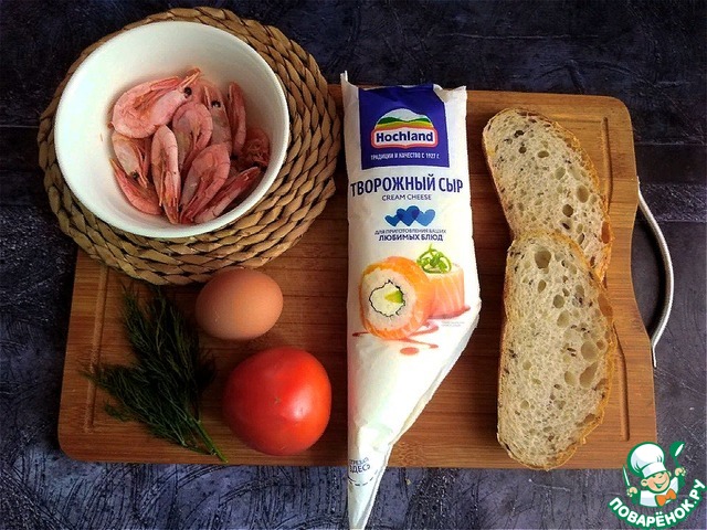 Ингредиенты для «Бутерброды с творожным сыром и креветками»: