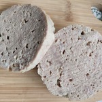 После приготовления снимите плёнку и выложите готовую колбасу на доску. Она легко вынимается из чашки, так как перед приготовлением были смазаны маслом. Дать колбасе немного остыть и можно нарезать на порционные куски.