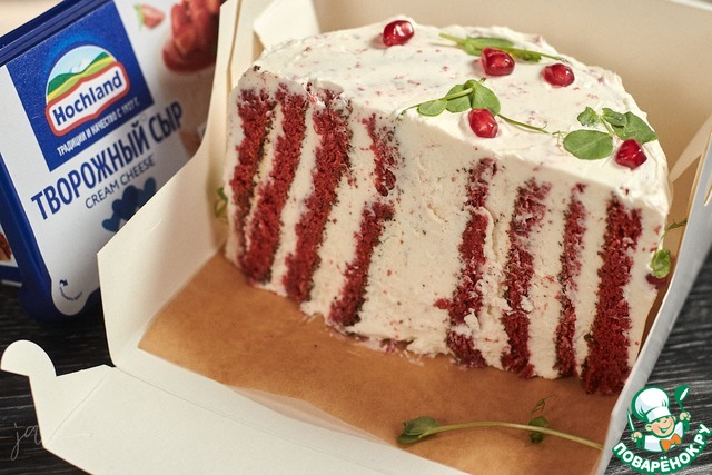 Не бывает худа без добра. Во время карантина, когда праздновать большими компаниями было затруднительно, в моду вошли бенто-торты. Маленькие тортики весом не более 500 гр. На одну, максимум - две персоны. Название отсылает нас к японской коробке для обеда, которая так и называется "бенто". Нет какого-то конкретного рецепта, значение имеет только размер. Поэтому я решила сделать Красный бархат. Это один из классических тортов с сырным кремом, для которого мы используем Творожный сыр Hochland для кулинарии. А для внутренней красоты он будет вертикальный.