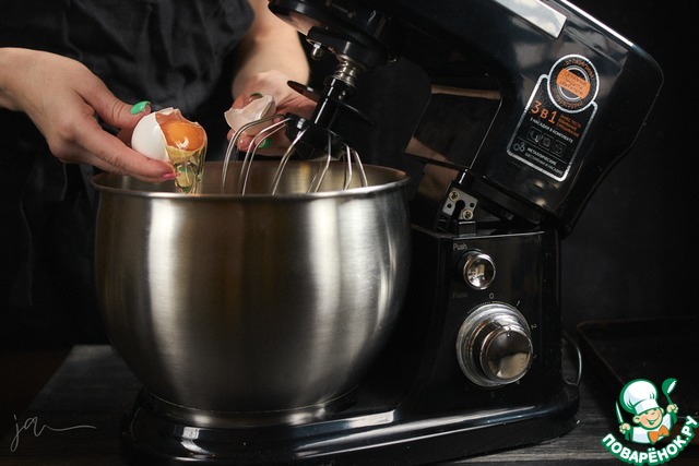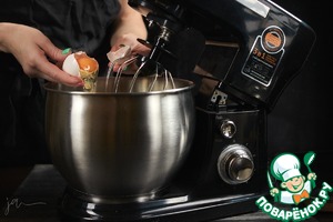 Желтки и яйца соединить с оставшимся сахаром. Взбить на максимальной скорости миксера до пышности.