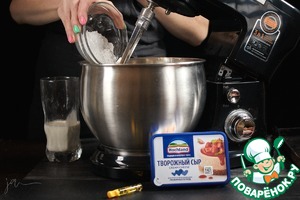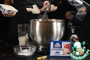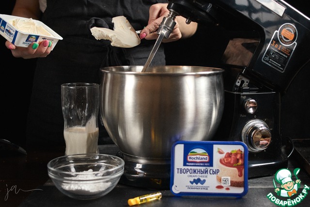 Пока остывает бисквит сделаем крем. Нам понадобится творожный сыр Hochland для кулинарии.