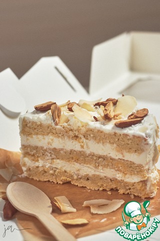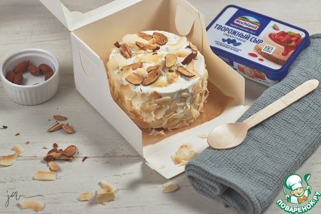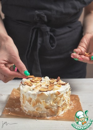 Украсить кокосовыми чипсами и жареным рубленым миндалем.