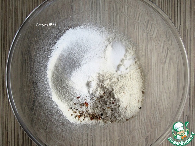 Смешайте все сухие ингредиенты (первые пять в списке).