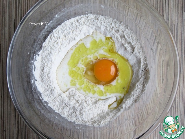 Замесите быстро тесто. Долго вымешивать не нужно, хотя, кусочки колбасы сопротивляются))