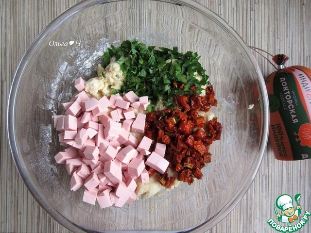 Рецепт «Сконы с колбасой и вялеными томатами»:
