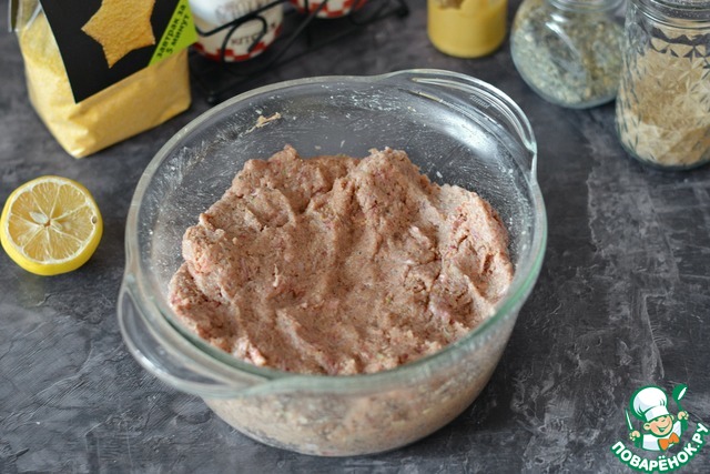 Приправьте фарш горчицей, лимонным соком, солью, перцем и итальянсиким травами. -