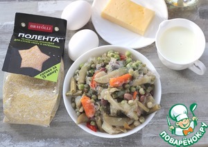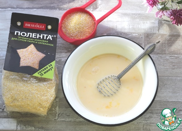В яично-сливочную смесь всыпать чечевично-злаковую поленту ТМ Bravolli, хорошо размешать, добавить по вкусу соль, пряности на свое предпочтение.