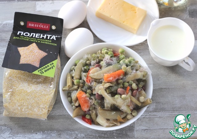 Для овощной запеканки выбираем овощи на свой вкус, я использовала азиатскую замороженную овощную смесь с базиликом.