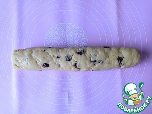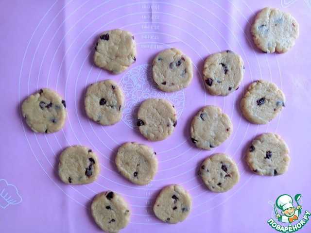 Разогреваем духовку до 180°С. Застилаем противень пергаментной бумагой или силиконовым ковриком для выпечки. Острым ножом нарезаем печенье на кружки толщиной 1 см и кладём их на противень на расстоянии около 2 см. друг от друга. Выпекаем, пока печенье не станет золотистым, 15-18 минут.