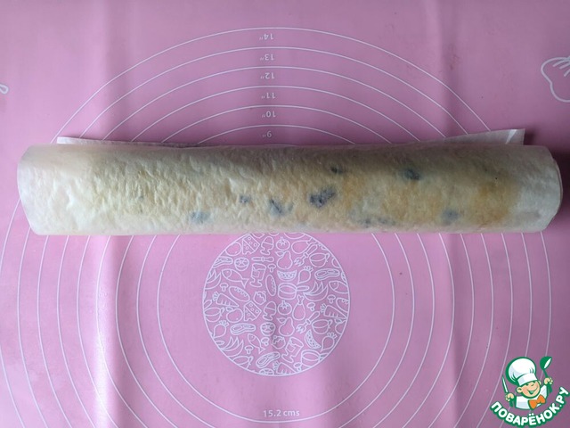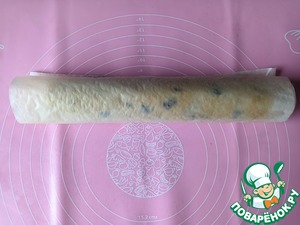 Кладём порезанную вяленую клюкву. Замешиваем мягкое эластичное тесто.