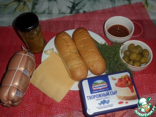 Ингредиенты для «Хот-дог с колбасой и сыром»: