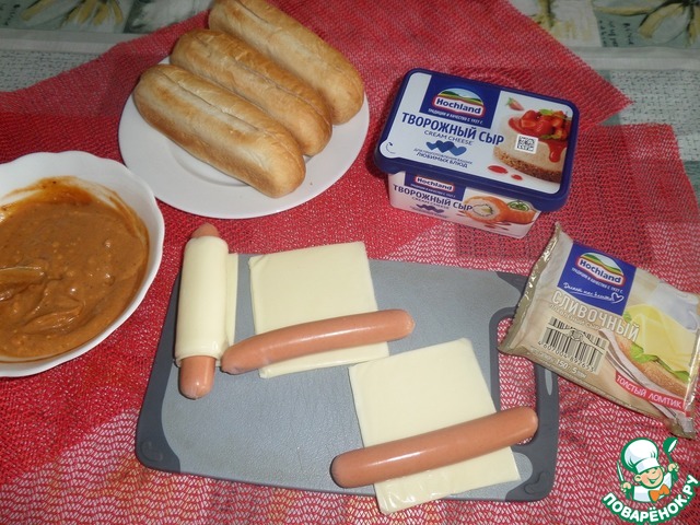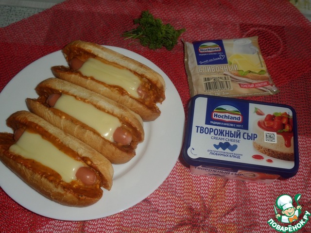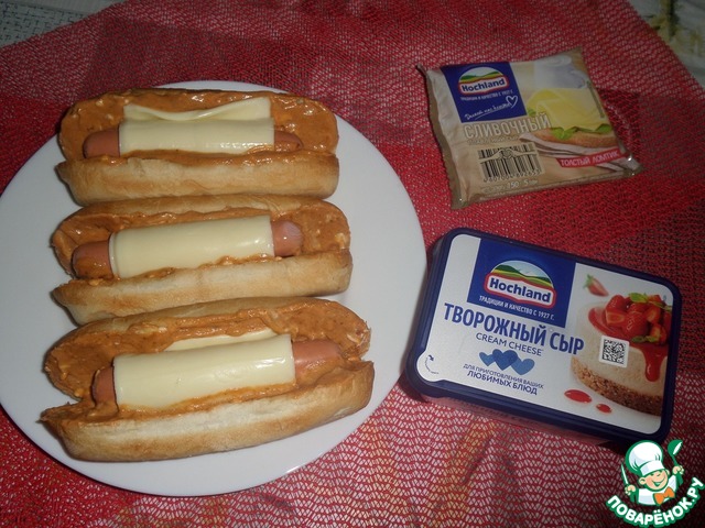 Каждую сосиску оборачиваем ломтиком плавленого сливочного сыра ТМ "Хохланд".