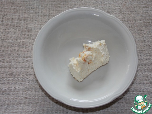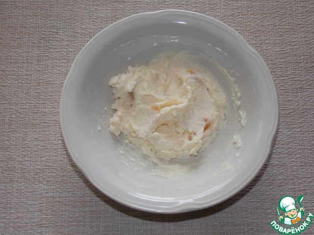 Творожную массу выложить в пиалу (у меня масса с добавлением кураги).