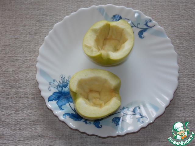 Яблоко разрезать пополам, аккуратно убрать середину с семенами.