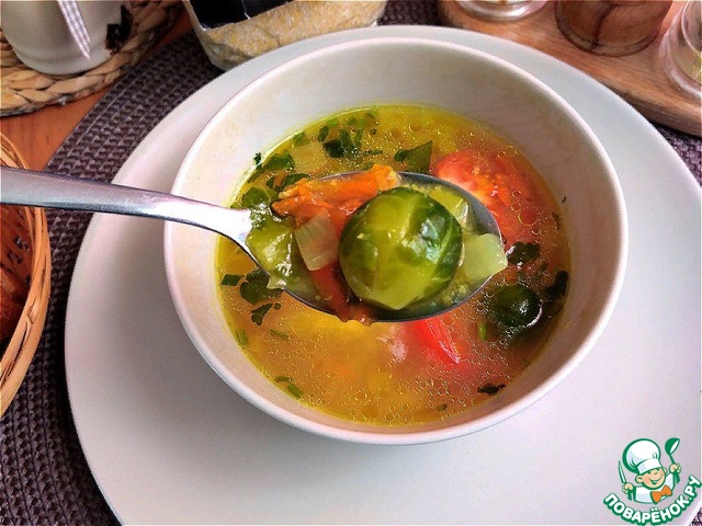 Это диетический суп. Он совершенно без поджарки. Без острых специй, на курином бульоне из филе грудки. Суп с полезными овощами, такими как: брюссельская капуста..., а так же - с чечевично-злаковой полентой. Всё в нём польза.