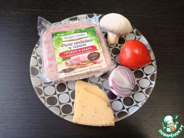 Ингредиенты для «Горячий бутерброд с индейкой и шампиньонами»: