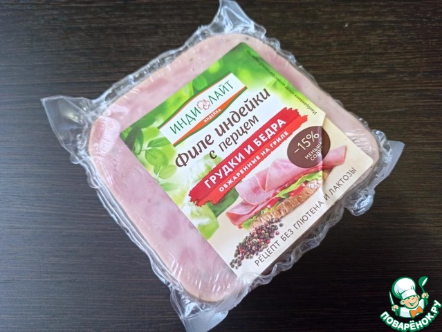 Из мясопродуктов я взяла прессованное филе индейки с перцем ТМ Индилайт.