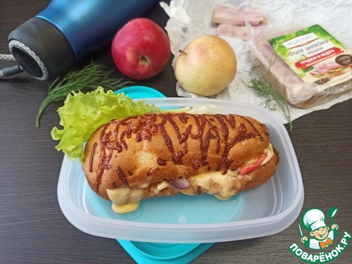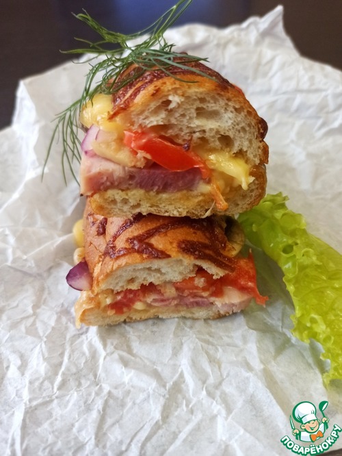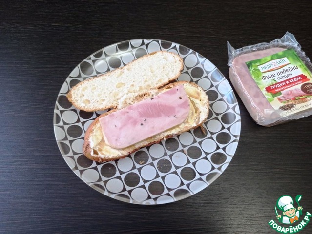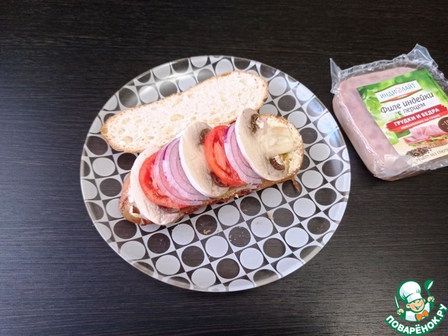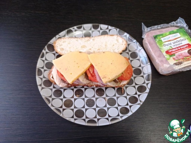 Рецепт «Горячий бутерброд с индейкой и шампиньонами»:
