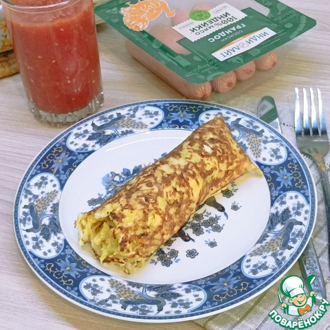 Это больше похоже на сосиски в капустных блинчиках. Мне особенно понравились они с томатным соком (домашним).