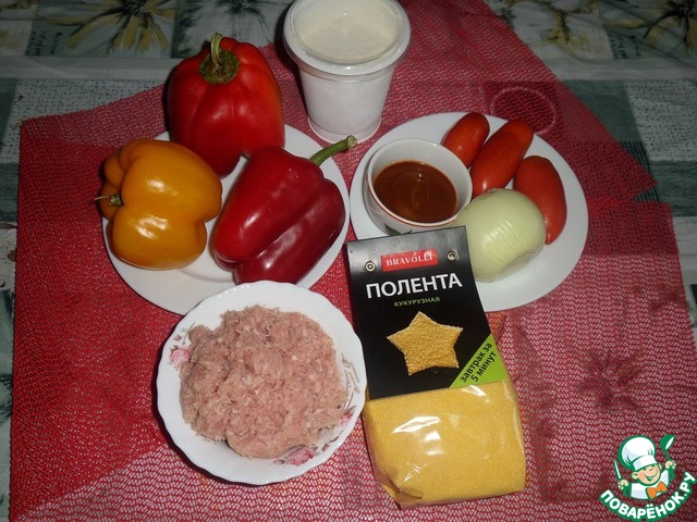 Ингредиенты для «Перец, фаршированный кукурузной полентой»: