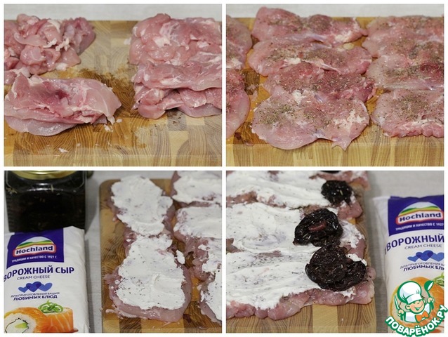 Рецепт «Куриные рулетики с вялеными сливами»: