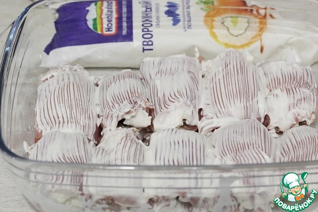 На каждое филе намазать тонким слоем творожный сыр (у меня ТМ Хохланд в рукаве).