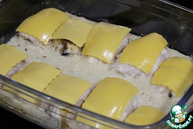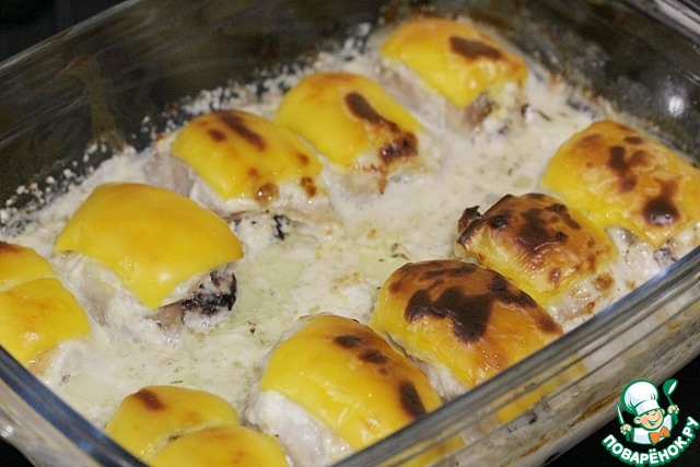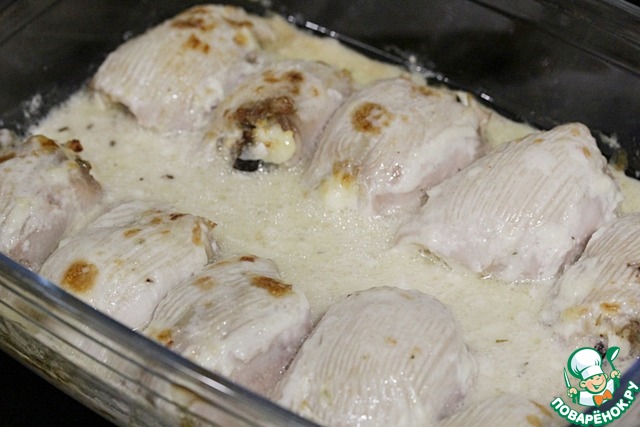 Поскольку филе без кожи, то сверху необходимо смазать их сметаной или майонезом.