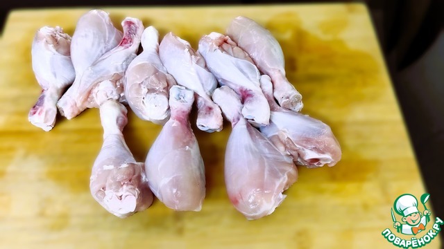 Подготовить голени. Промыть ( при желании снять шкуру ). Просушить бумажным полотенцем.