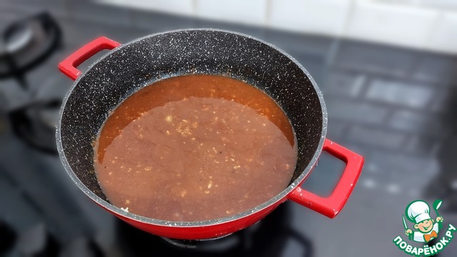 Выложить обжаренные голени в сковороду с соусом и полить сверху каждую ножку соусом.
