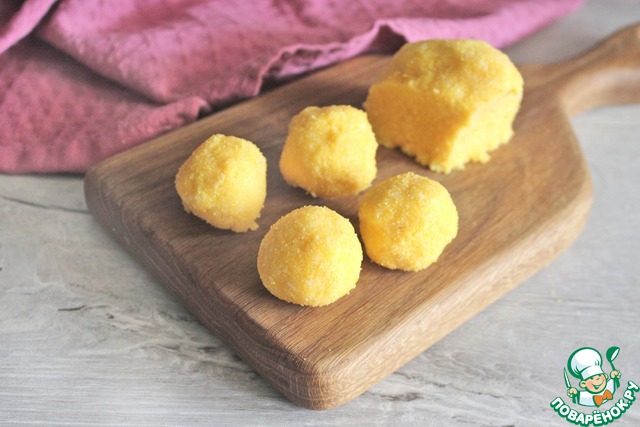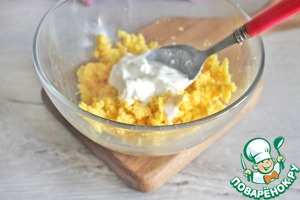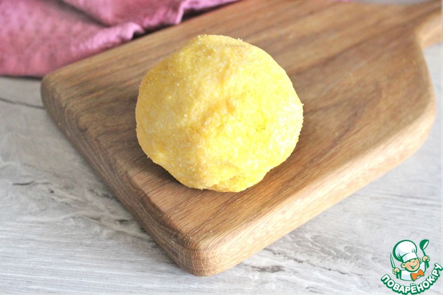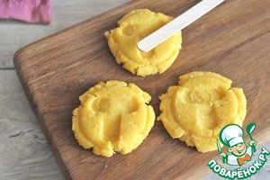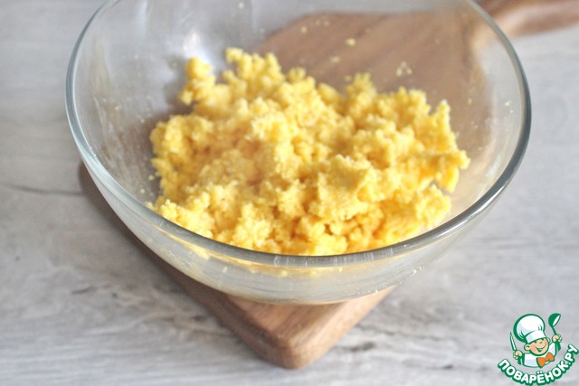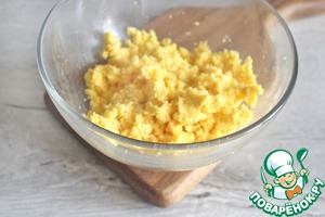 Перетереть хорошо руками сливочное масло с полентной массой.