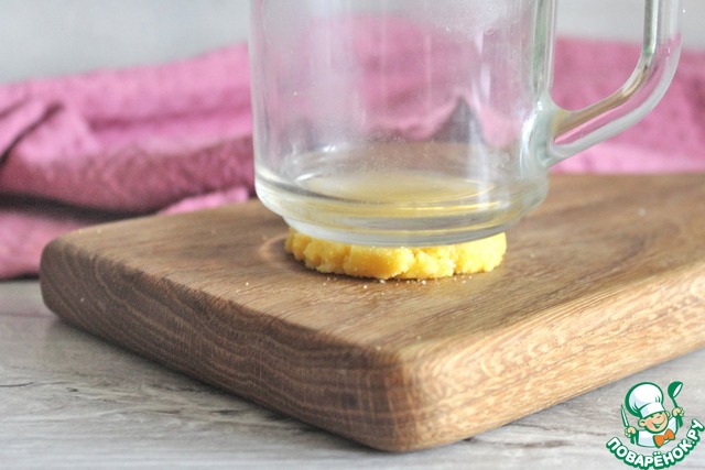 Шарик из теста раздавить стаканом в пласт толщиной около 5 мм.