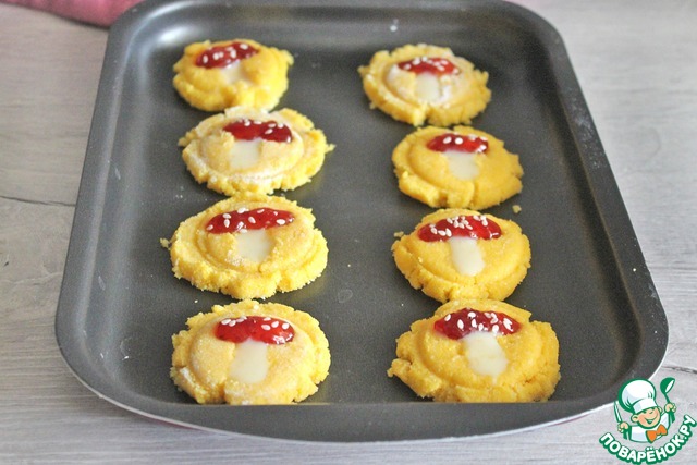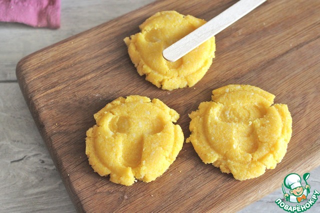 Осень, рыжая подружка, не стучи в моё окно… За окном хмуро, холодно… Но не дадим себе закиснуть, осень – время душевных чаепитий. Поэтому будем пить чай с вкусным и необычным печеньем из кукурузной поленты с красивыми «мухоморчиками». Нежное печенье с хрустящими боками, очарует легким сырно - копченым ароматом и своим интересным видом. Красивое ж, правда?! Вдохновляемся и творим, печем и пьем чай! Сделаем хмурую осень яркой!