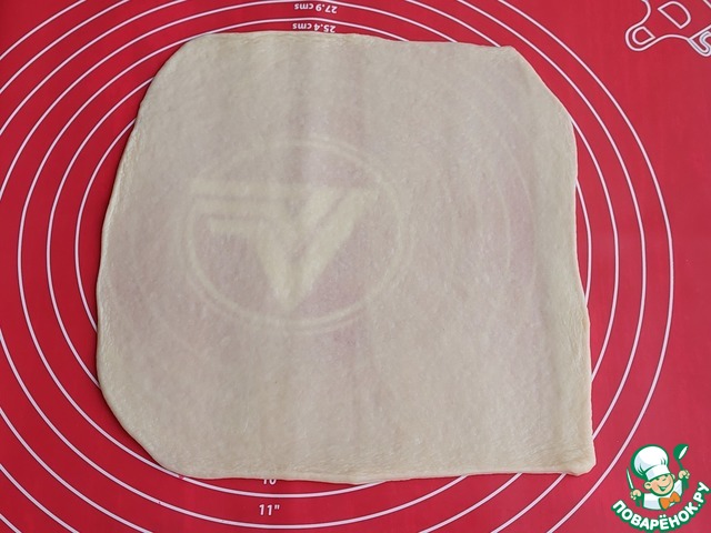 Каждый кусочек белого теста раскатать в прямоугольник.