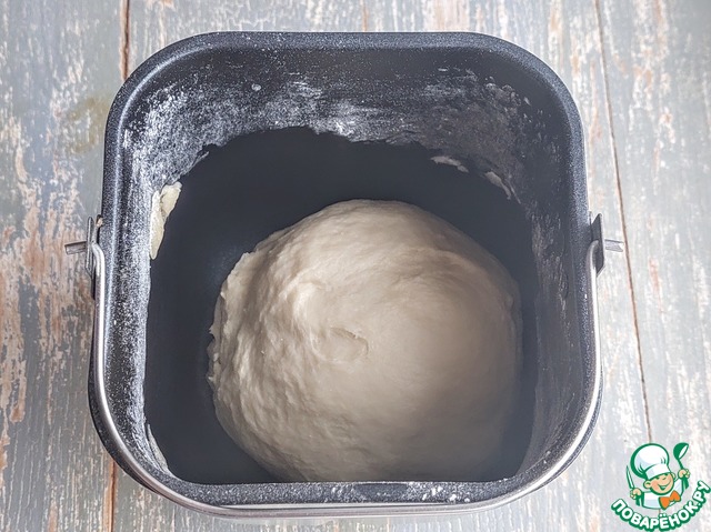 Замесить тесто. Оставить тесто в теплом месте на 30-40 мин. для увеличения в объёме, я оставляю в хлебопечке.