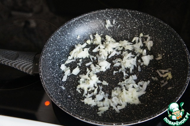 Маленькую луковицу порезать и обжарить на смеси сливочного и растительного масла.