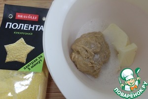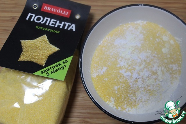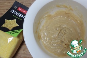 Отдельно смешать муку с разрыхлителем, соду и поленту.