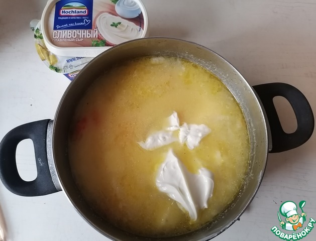 Варить до готовности картофеля. Затем добавить плавленый сыр