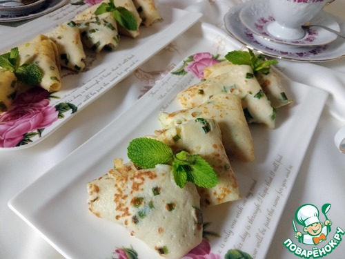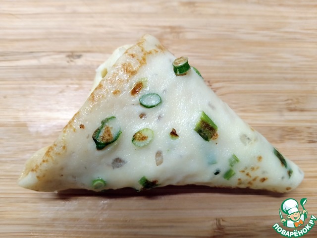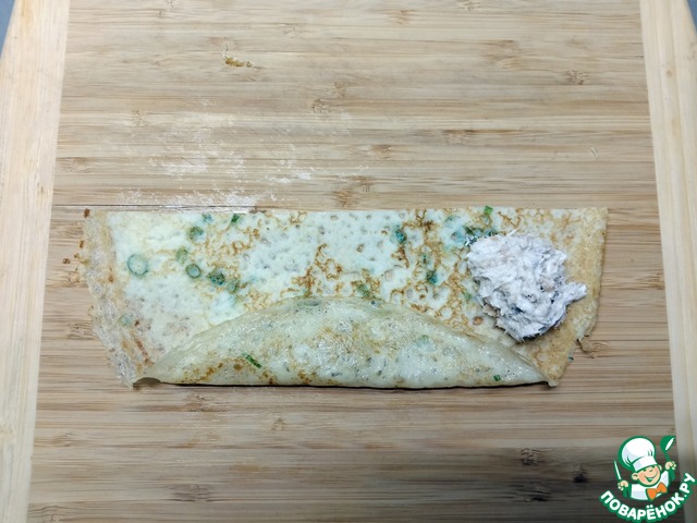 Рецепт «Блины с зелёным луком и рыбной начинкой»: